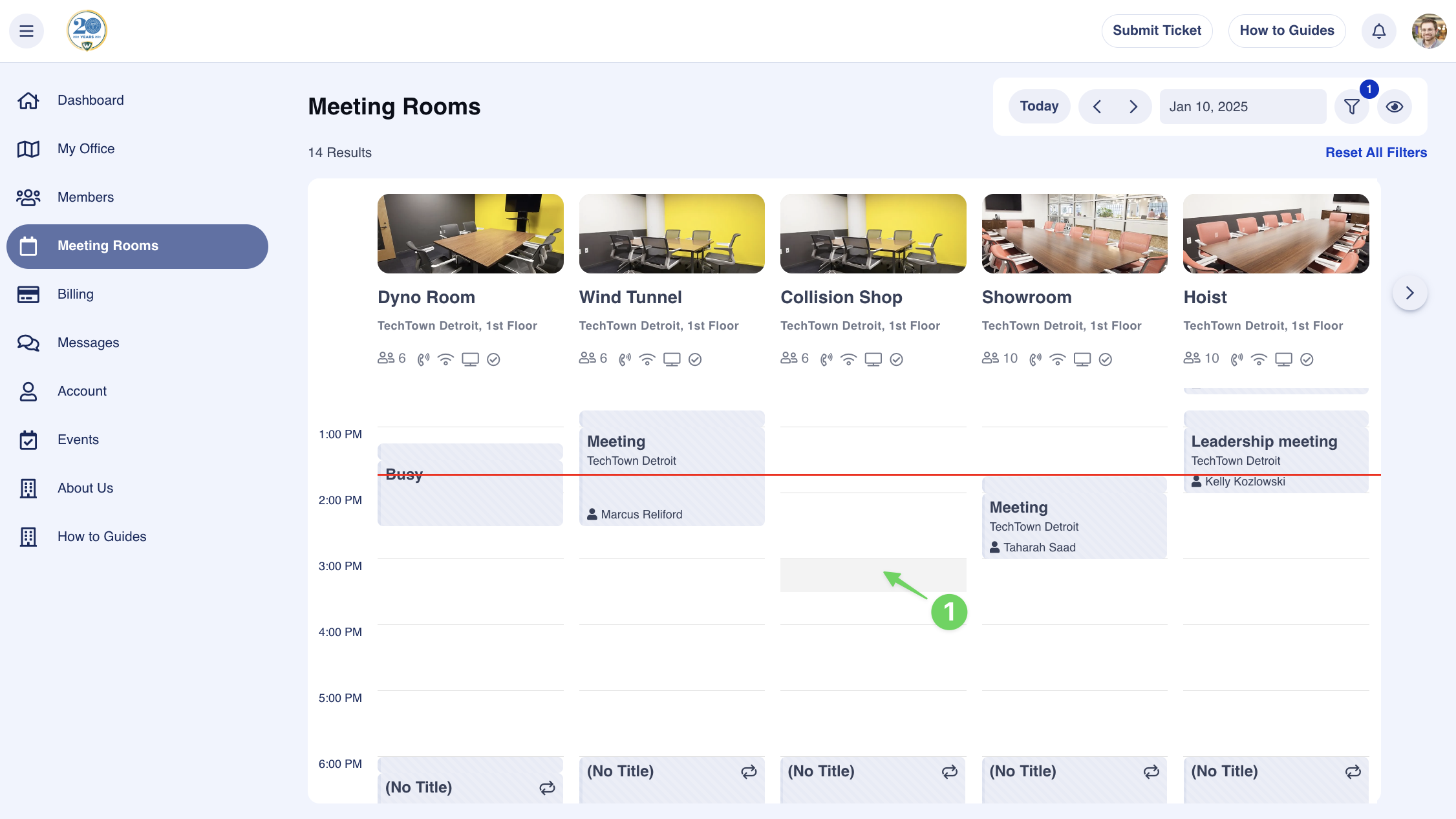 Step 1: Log Into The Members Portal & Navigate to the Meeting Room Calendar